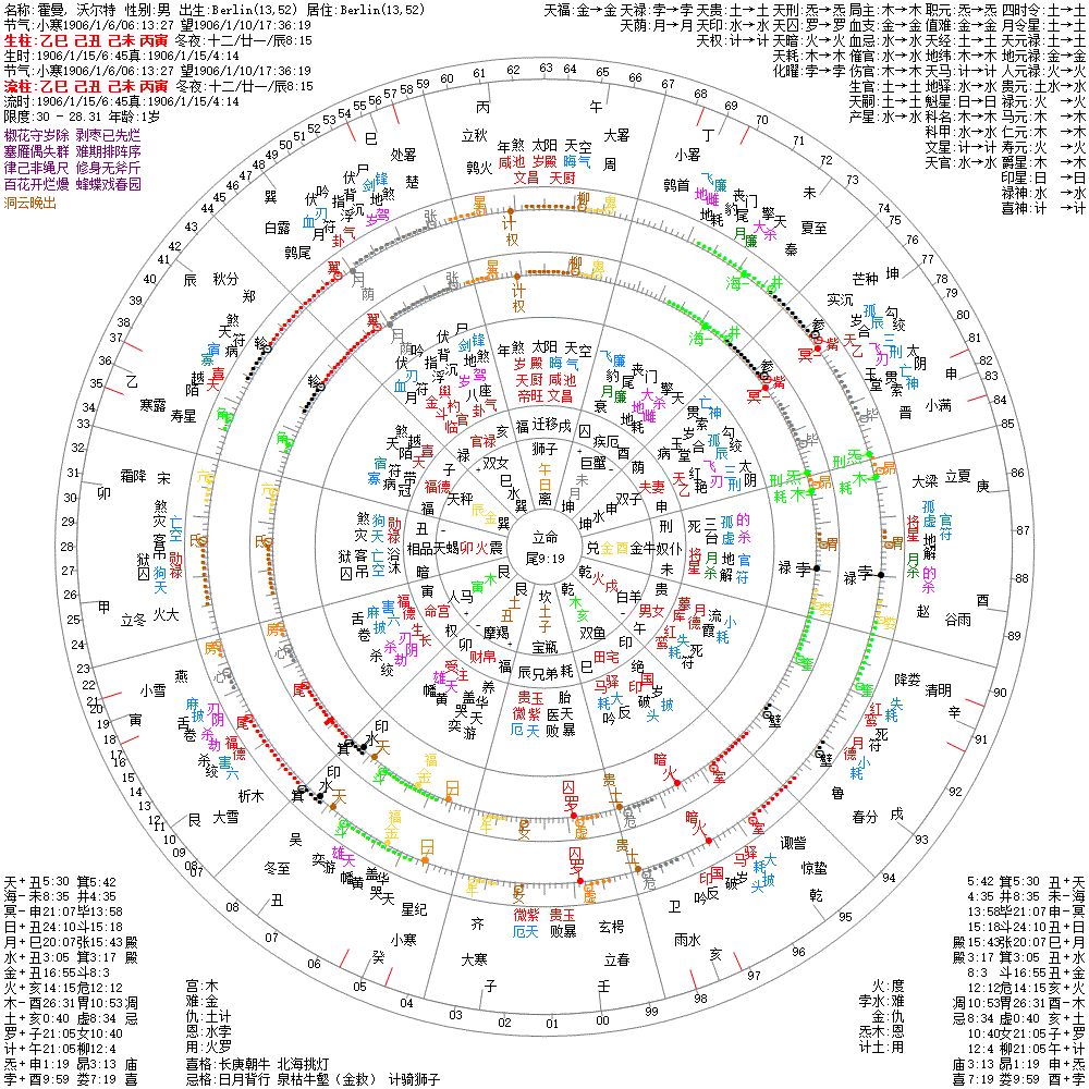 出生阳历:1906/1/15/6:45
