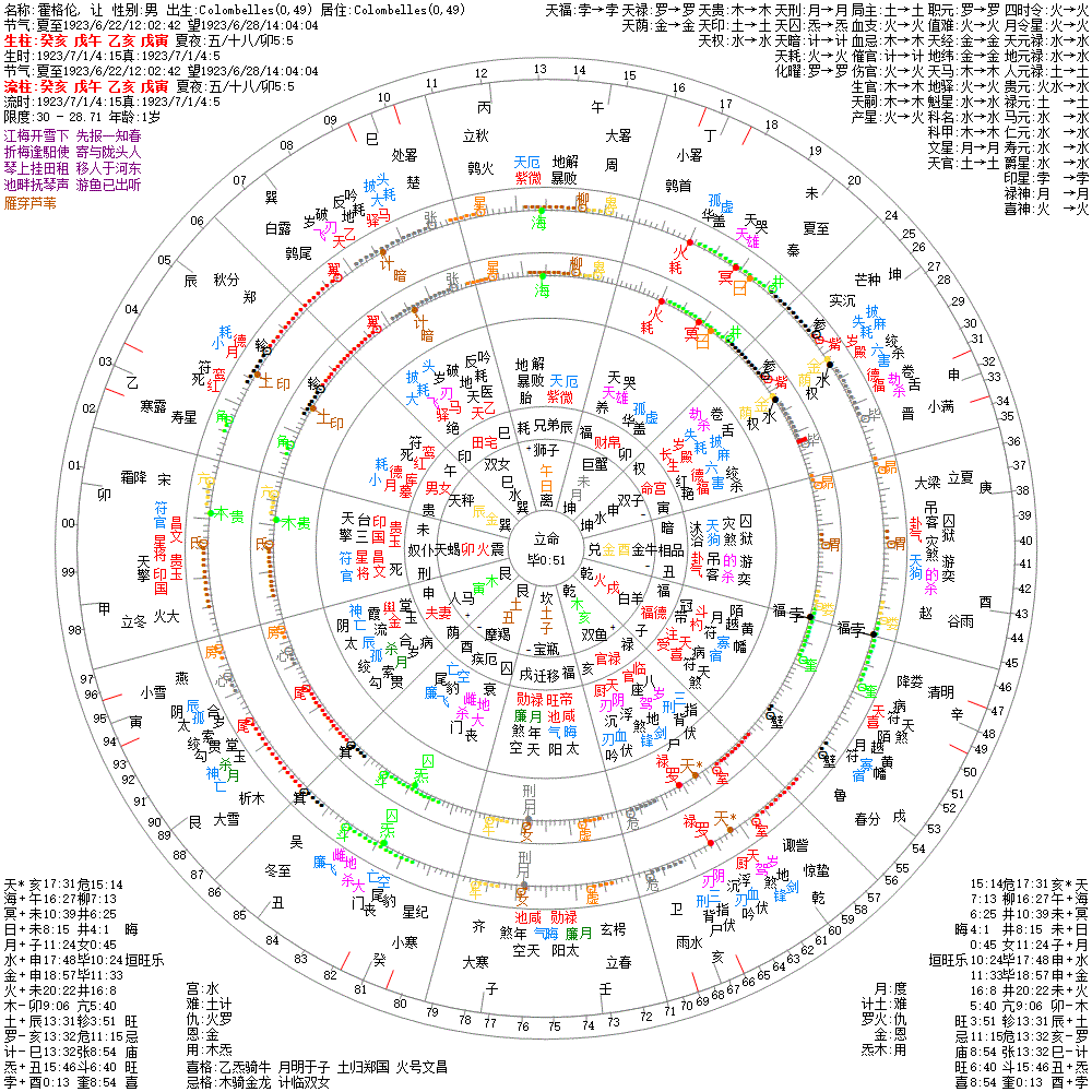 小运:丁丑1 丙子2 乙亥3 甲戌4 癸酉5 壬申6 辛未7 庚午8 己巳9