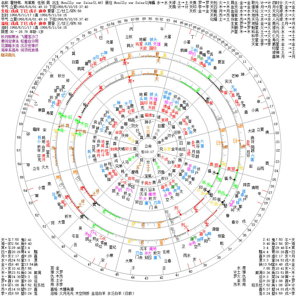 大运:戊午10 己未20 庚申30 辛酉40 壬戌50 癸亥60 甲子70 乙丑80 丙寅90 丁卯100