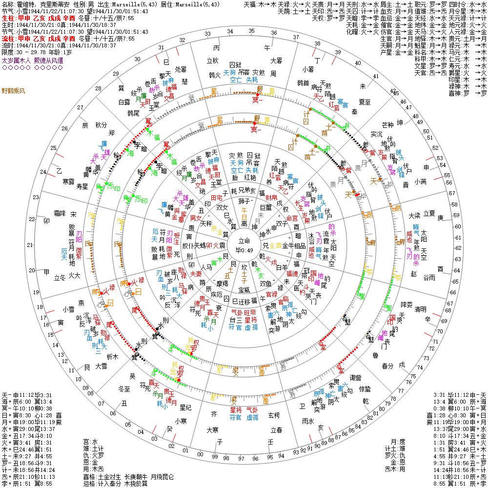 出生阳历:1944/11/30/21:0