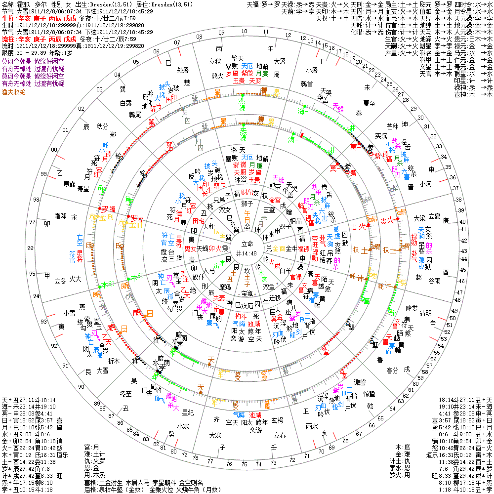 大运:辛丑10 壬寅20 癸卯30 甲辰40 乙巳50 丙午60 丁未70 戊申80 己酉90 庚戌100