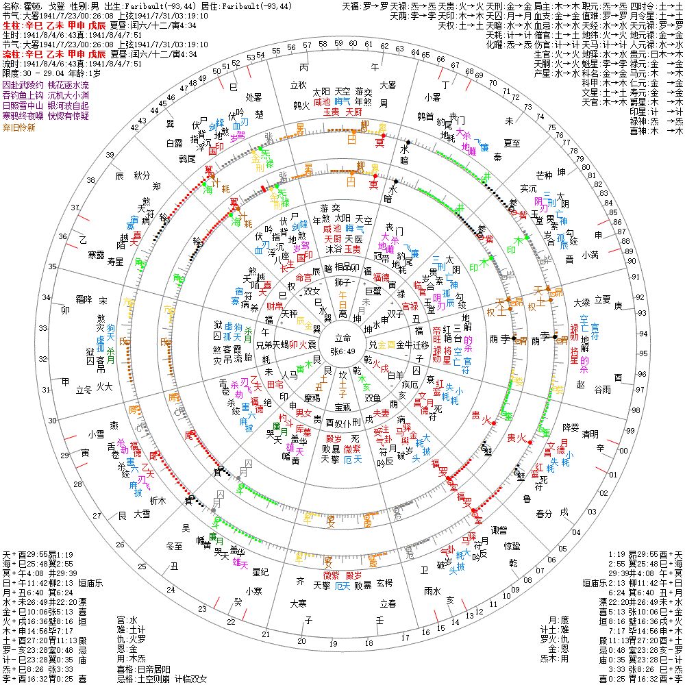 大运:甲午11 癸巳21 壬辰31 辛卯41 庚寅51 己丑61 戊子71 丁亥81 丙戌91 乙酉101
