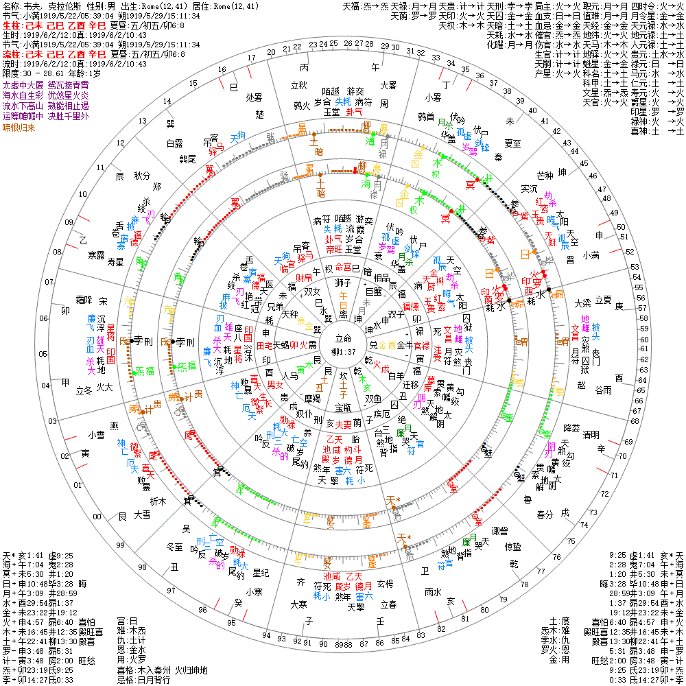 出生阳历:1919/6/2/12:0