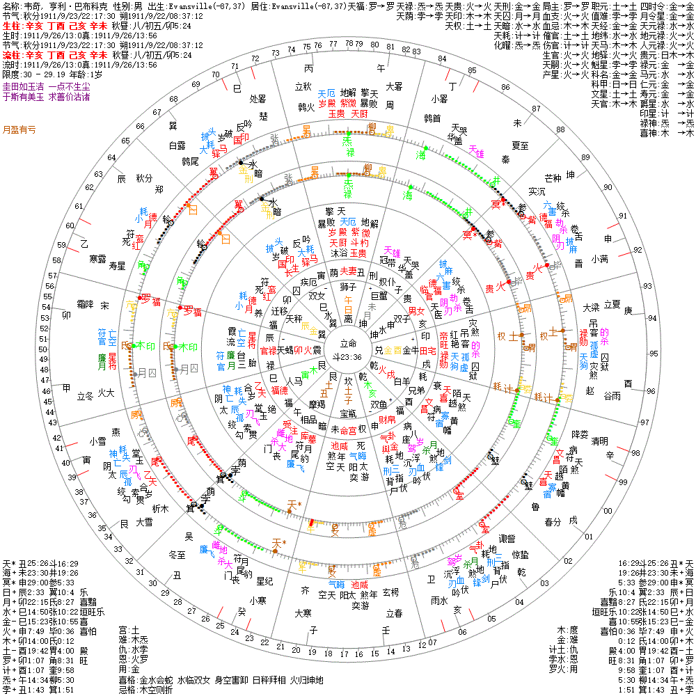 出生阳历:1911/9/26/13:0