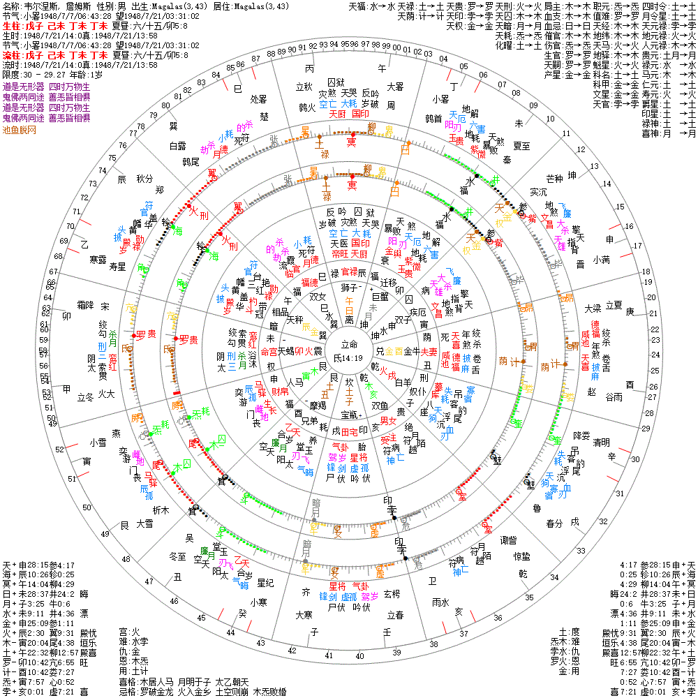 子女长生:男女宫主星飞入长生之地,子女数多也,可在先天数上翻倍。