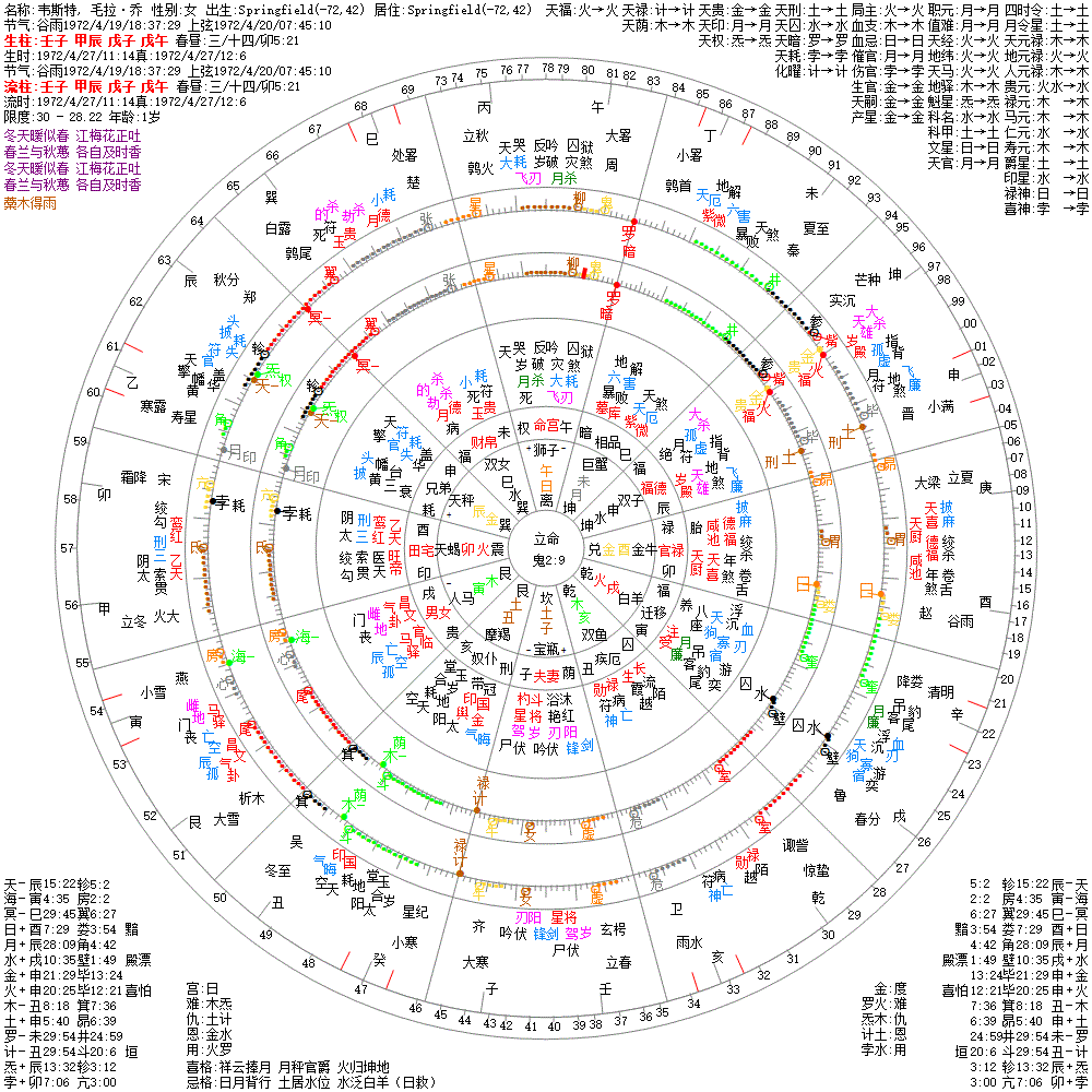 大运:癸卯9 壬寅19 辛丑29 庚子39 己亥49 戊戌59 丁酉69 丙申79 乙未89 甲午99
