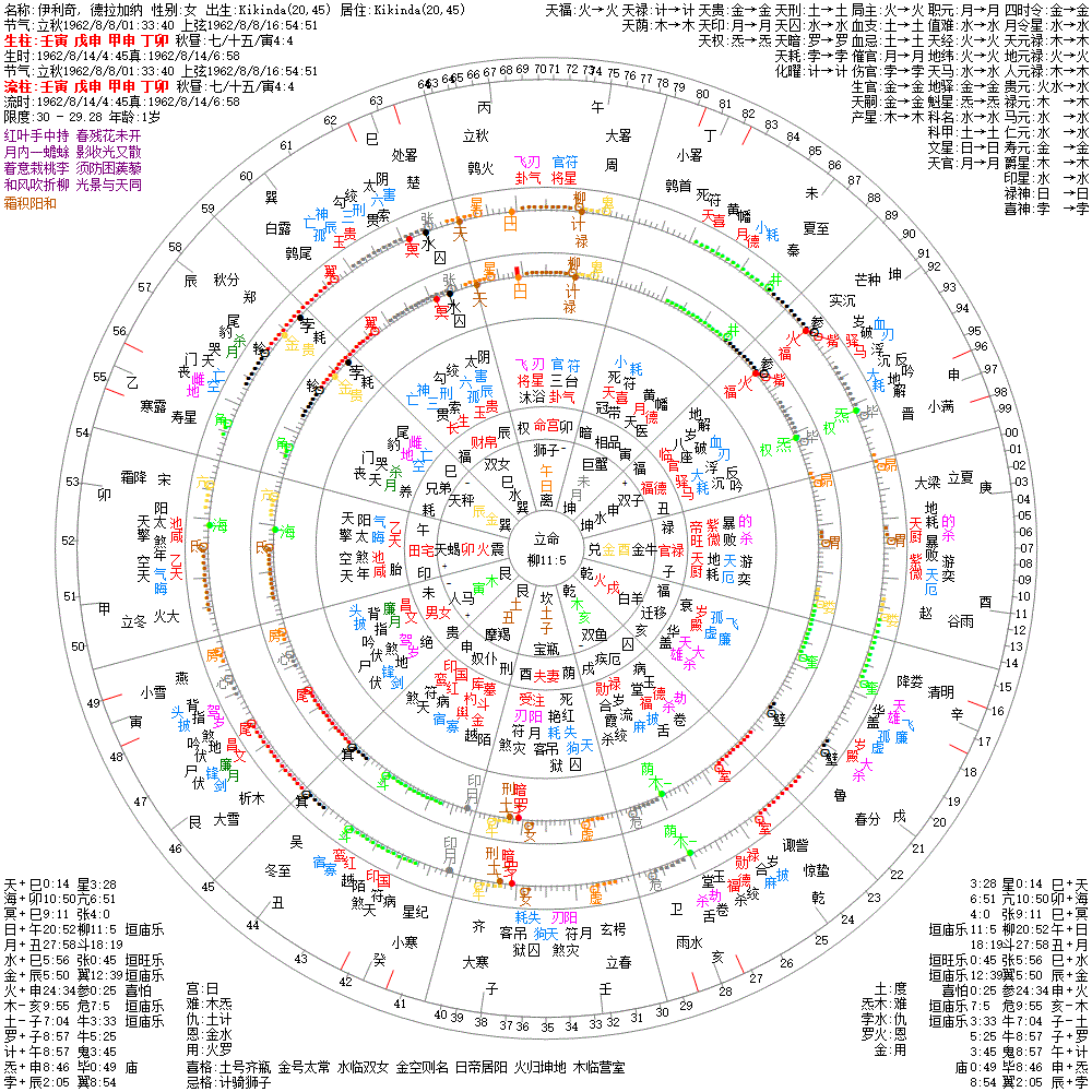 大运:丁未14 丙午24 乙巳34 甲辰44 癸卯54 壬寅64 辛丑74 庚子84 己亥94 戊戌104