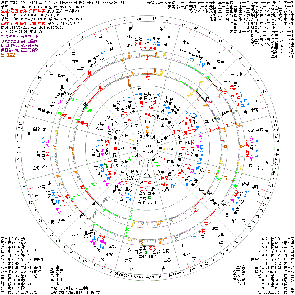 大运:己巳14 戊辰24 丁卯34 丙寅44 乙丑54 甲子64 癸亥74 壬戌84 辛酉94 庚申104
