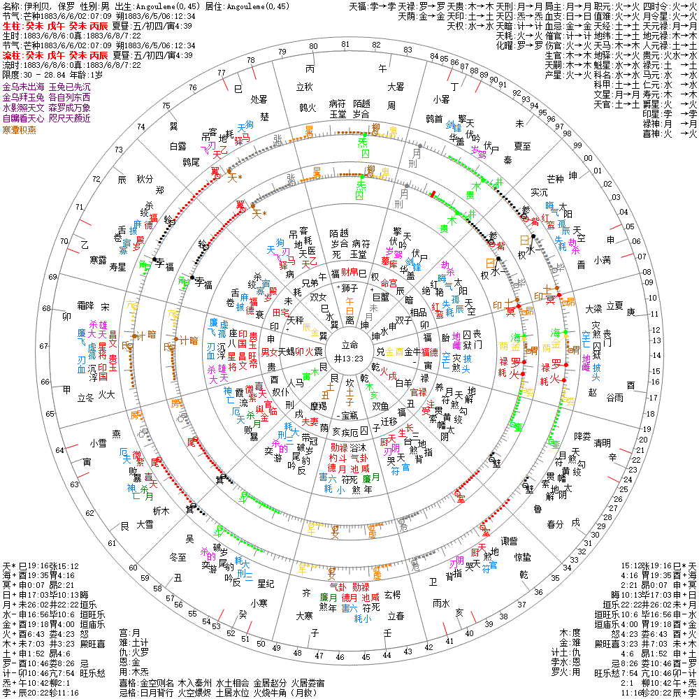 小运:乙卯1 甲寅2 癸丑3 壬子4 辛亥5 庚戌6 己酉7 戊申8 丁未9 丙午10 乙巳11 甲辰12
