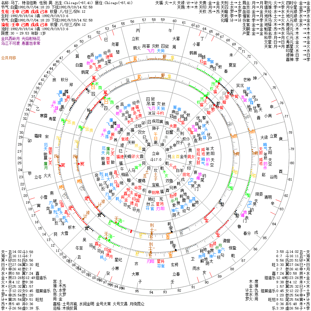 大运:庚戌8 辛亥18 壬子28 癸丑38 甲寅48 乙卯58 丙辰68 丁巳78 戊午88 己未98
