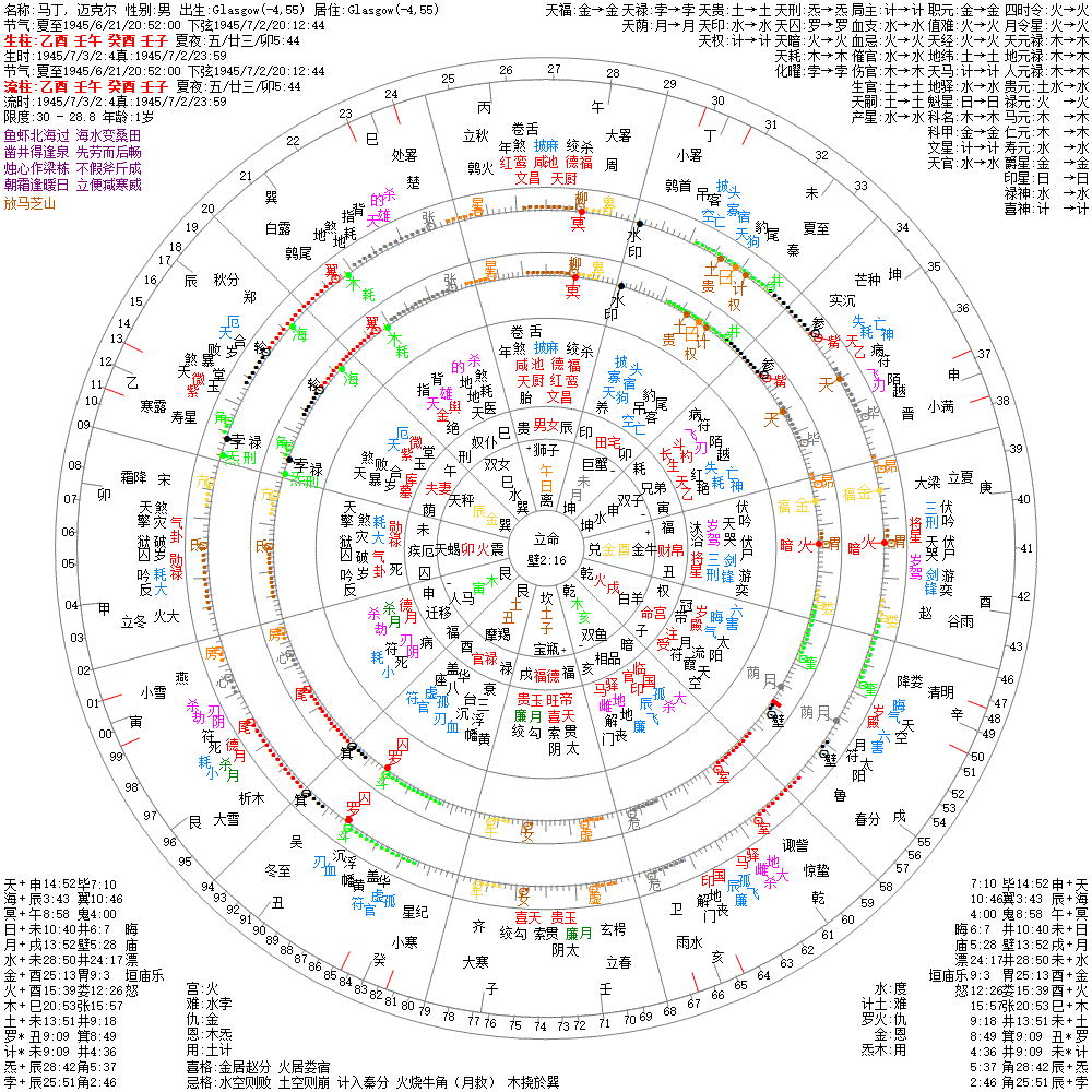 出生阳历:1945/7/3/2:4