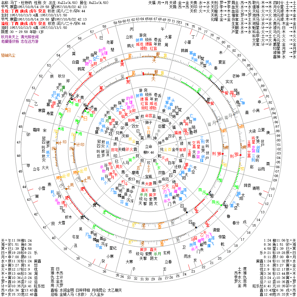 大运:辛亥10 壬子20 癸丑30 甲寅40 乙卯50 丙辰60 丁巳70 戊午80 己未90 庚申100