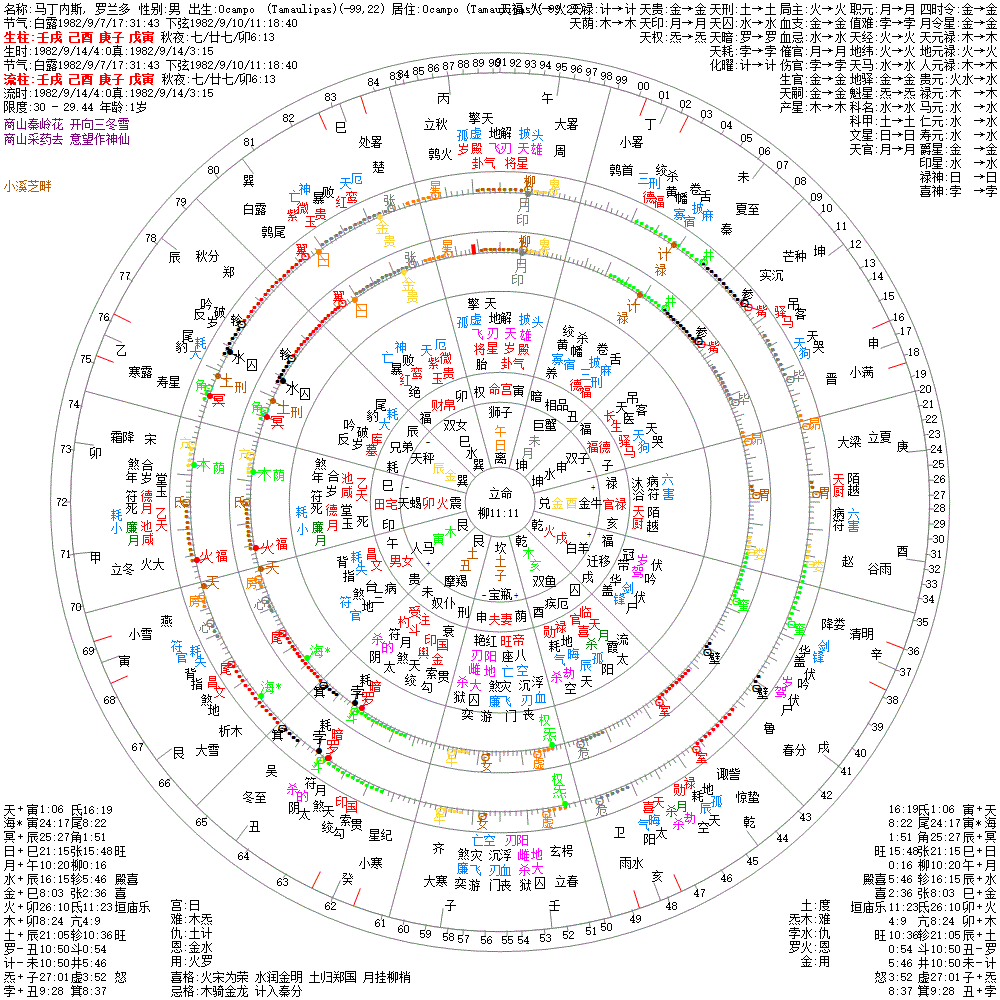 大运:庚戌10 辛亥20 壬子30 癸丑40 甲寅50 乙卯60 丙辰70 丁巳80 戊午90 己未100