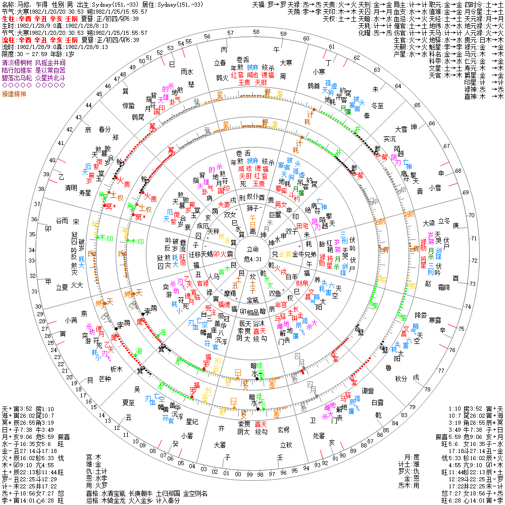 大运:庚子9 己亥19 戊戌29 丁酉39 丙申49 乙未59 甲午69 癸巳79 壬辰89 辛卯99