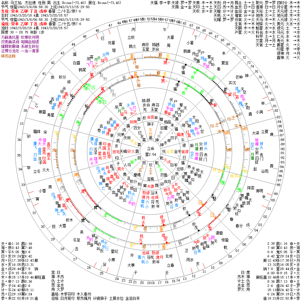 大运:甲寅16 癸丑26 壬子36 辛亥46 庚戌56 己酉66 戊申76 丁未86 丙午96 乙巳106
