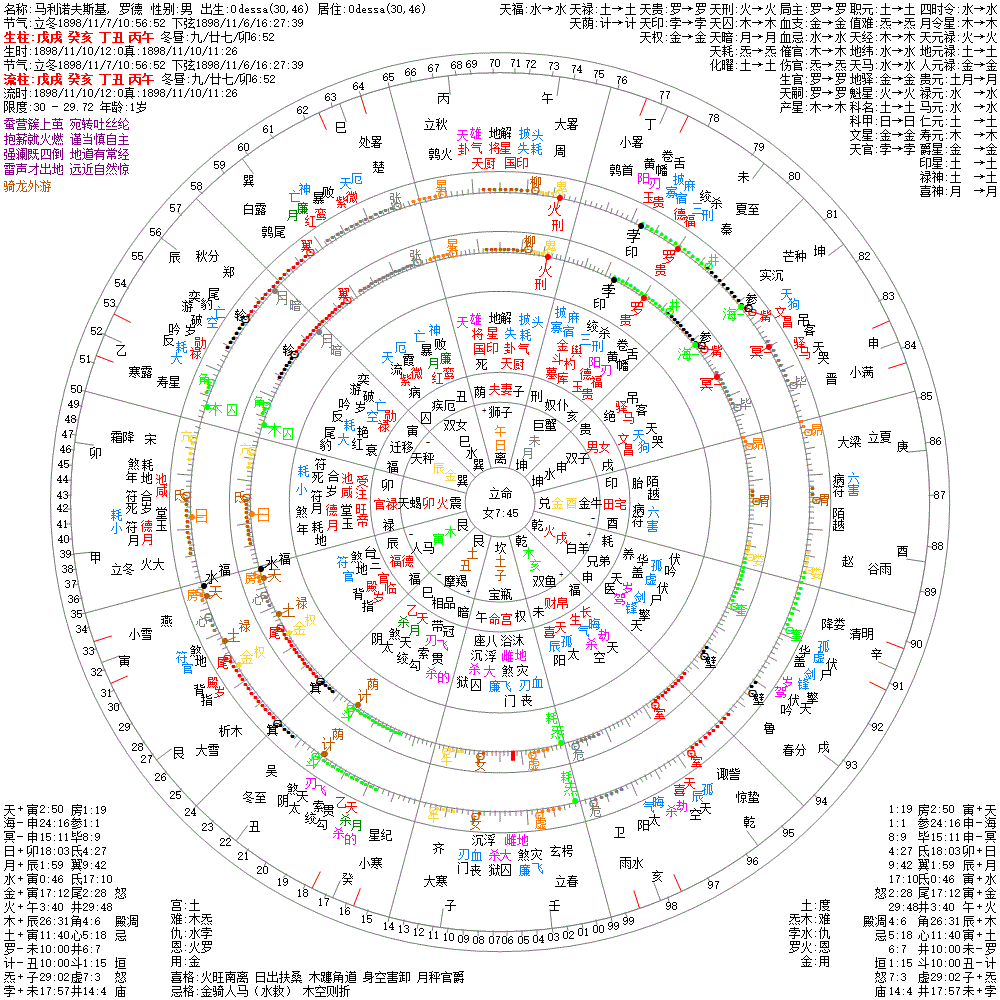 大运:甲子10 乙丑20 丙寅30 丁卯40 戊辰50 己巳60 庚午70 辛未80 壬申90 癸酉100