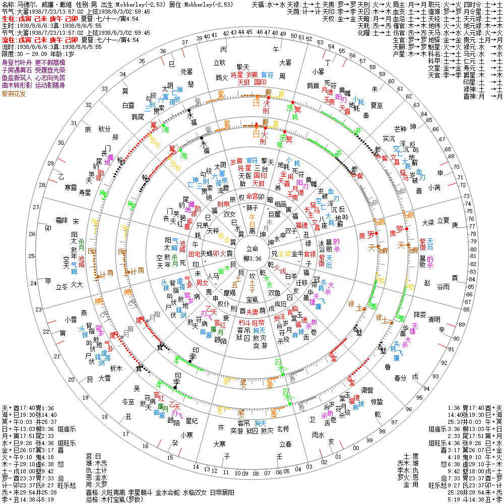 《朱雀当权》夏生人见火星在巳午安命,乃朱雀当权。《灵台星格》