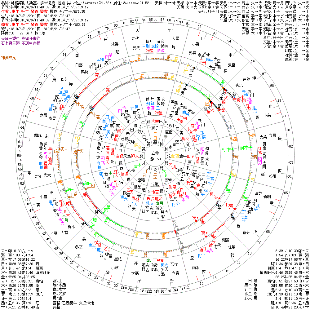 子女长生:男女宫主星飞入长生之地,子女数多也,可在先天数上翻倍。
