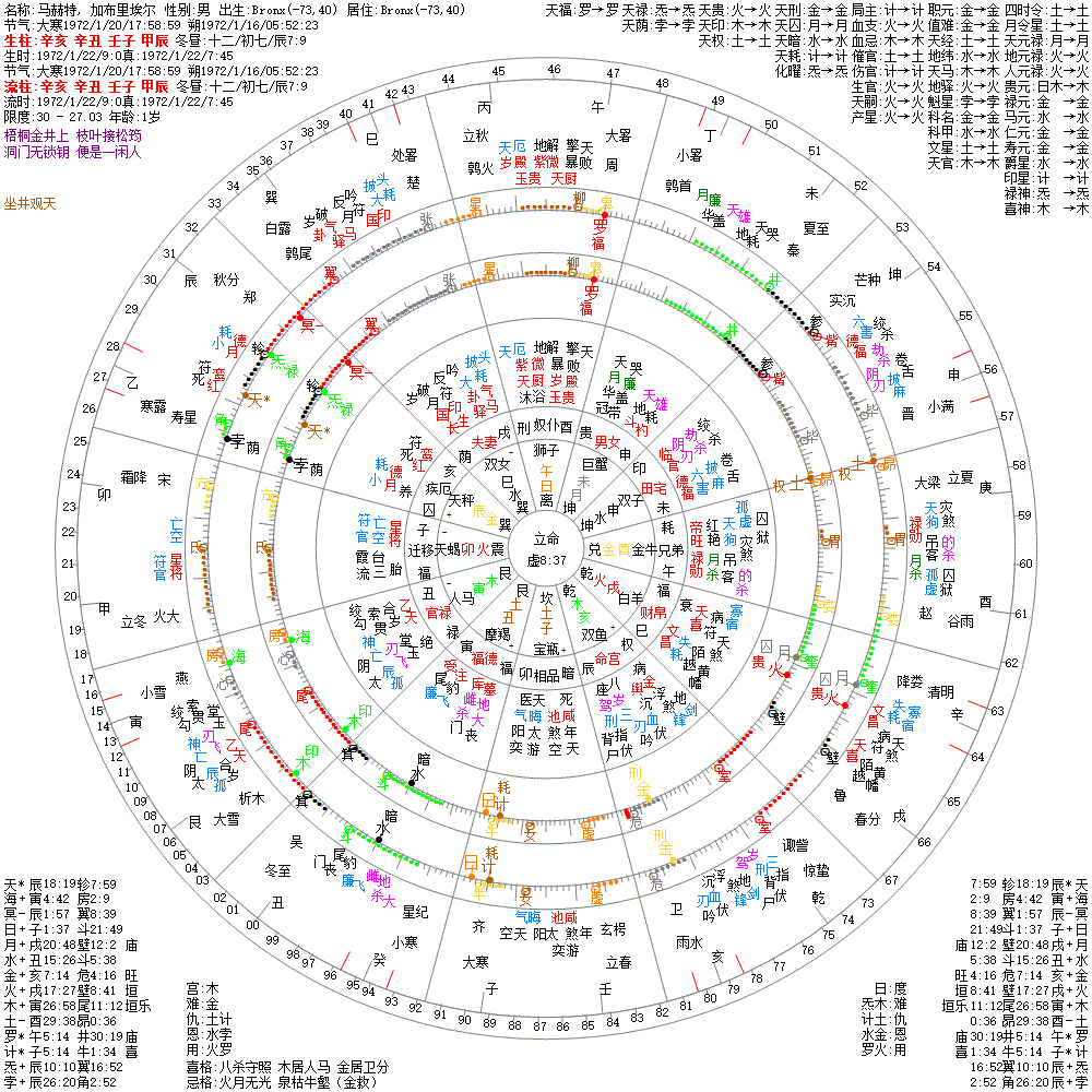 大运:庚子7 己亥17 戊戌27 丁酉37 丙申47 乙未57 甲午67 癸巳77 壬辰87 辛卯97