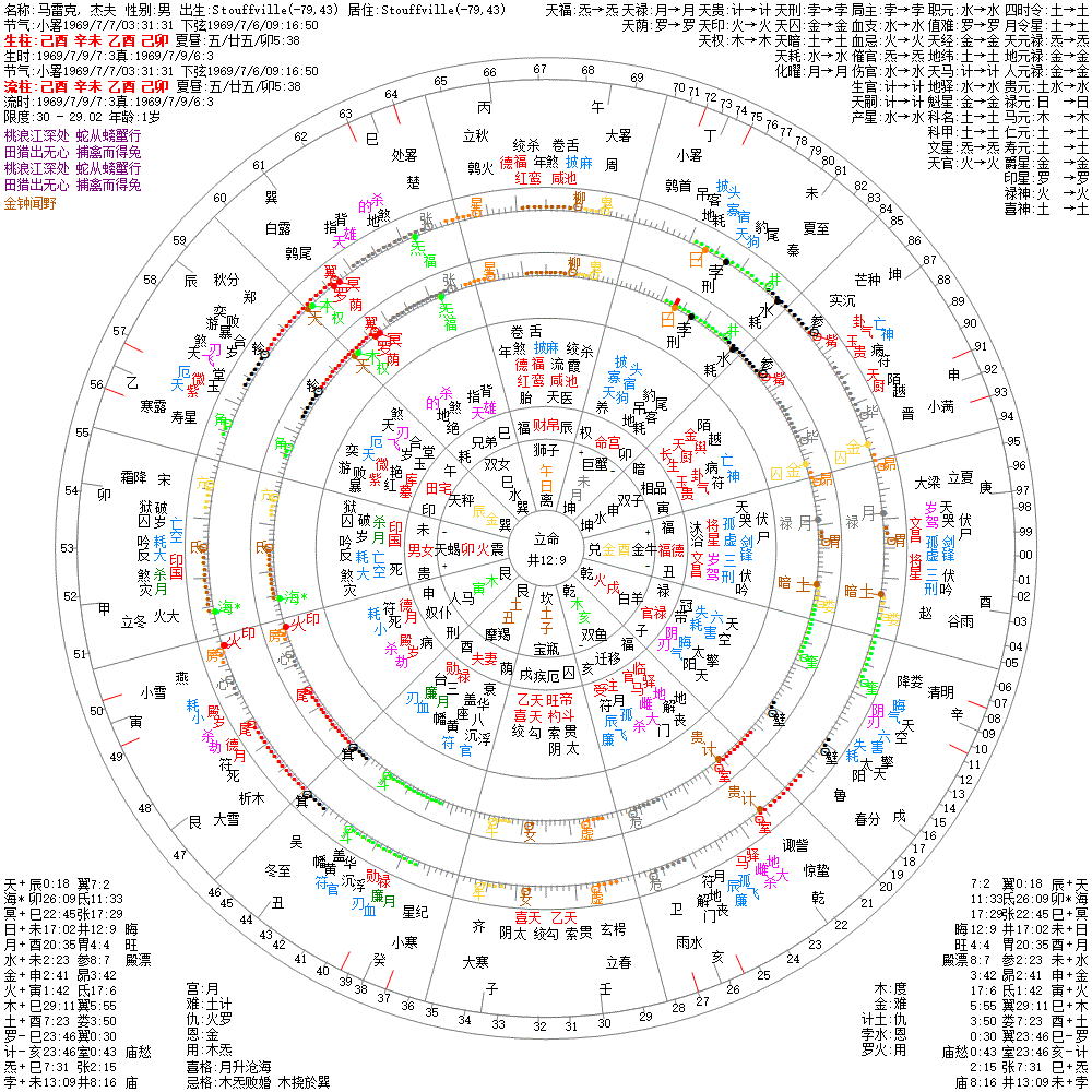 大运:庚午13 己巳23 戊辰33 丁卯43 丙寅53 乙丑63 甲子73 癸亥83 壬戌93 辛酉103