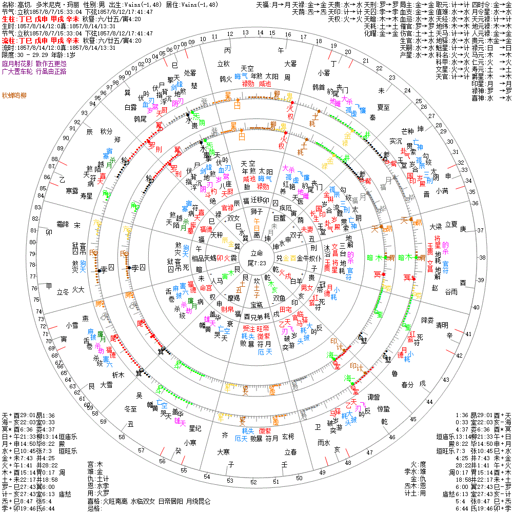 小运:庚午1 己巳2 戊辰3 丁卯4 丙寅5 乙丑6 甲子7 癸亥8 壬戌9 辛酉10 庚申11 己未12 戊午13