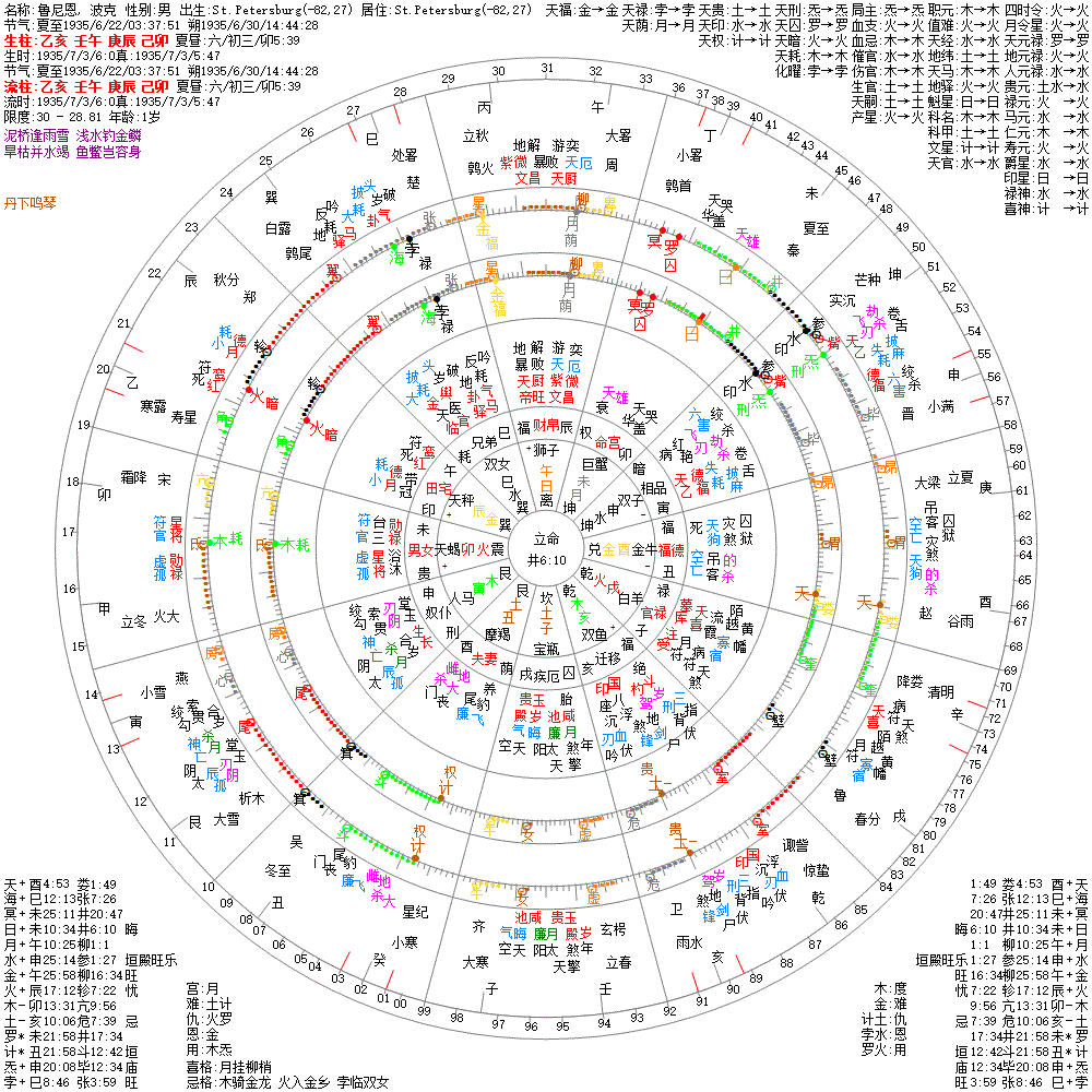 大运:辛巳10 庚辰20 己卯30 戊寅40 丁丑50 丙子60 乙亥70 甲戌80 癸酉90 壬申100