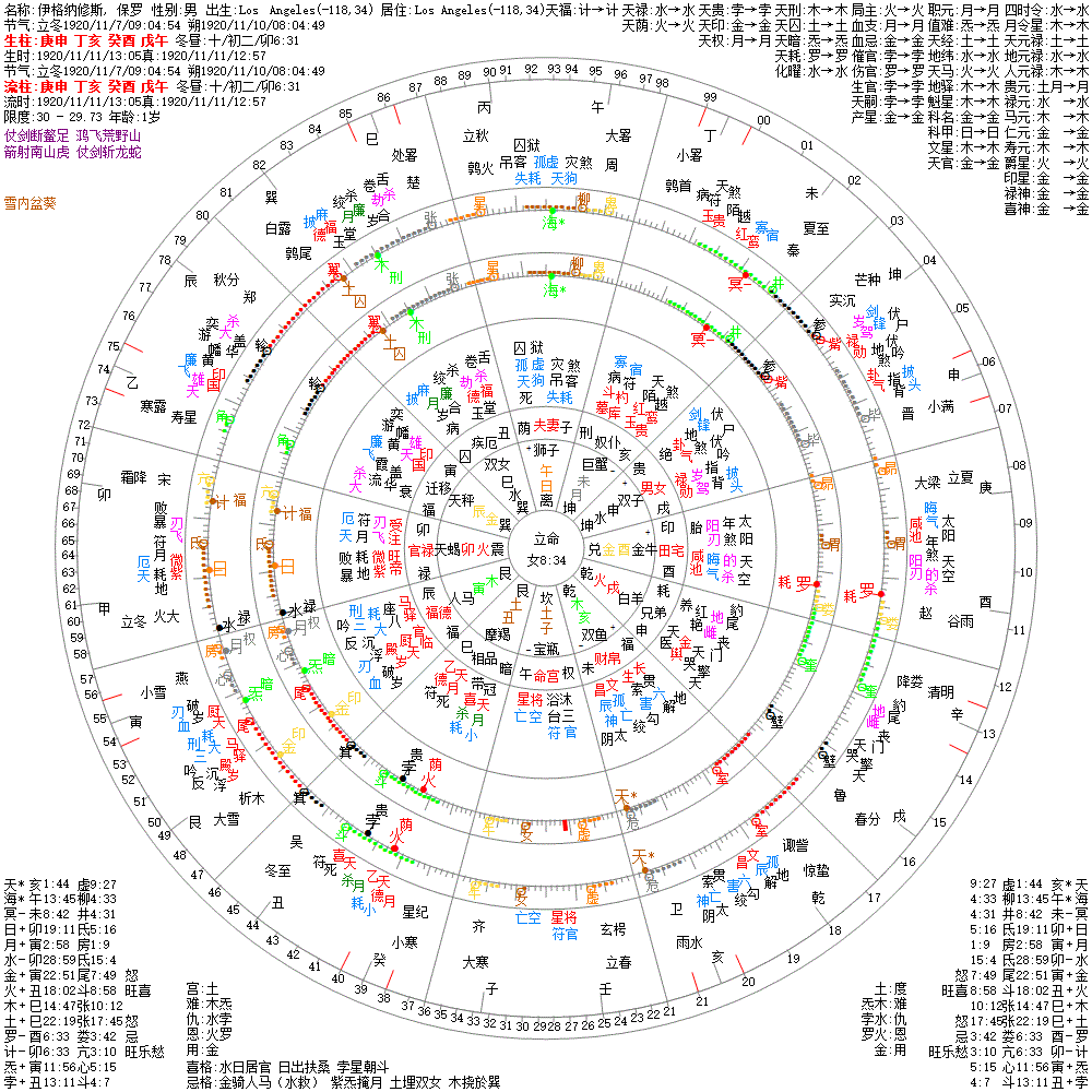 大运:戊子10 己丑20 庚寅30 辛卯40 壬辰50 癸巳60 甲午70 乙未80 丙申90 丁酉100