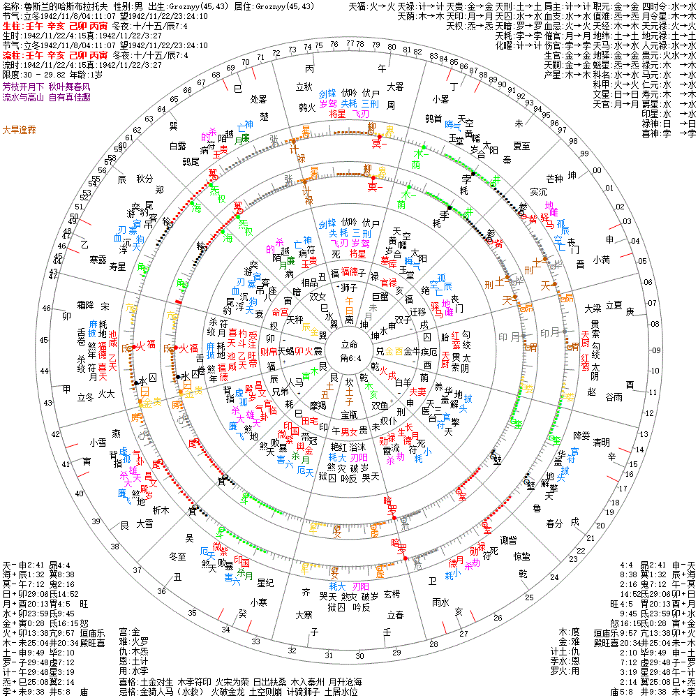 大运:壬子7 癸丑17 甲寅27 乙卯37 丙辰47 丁巳57 戊午67 己未77 庚申87 辛酉97