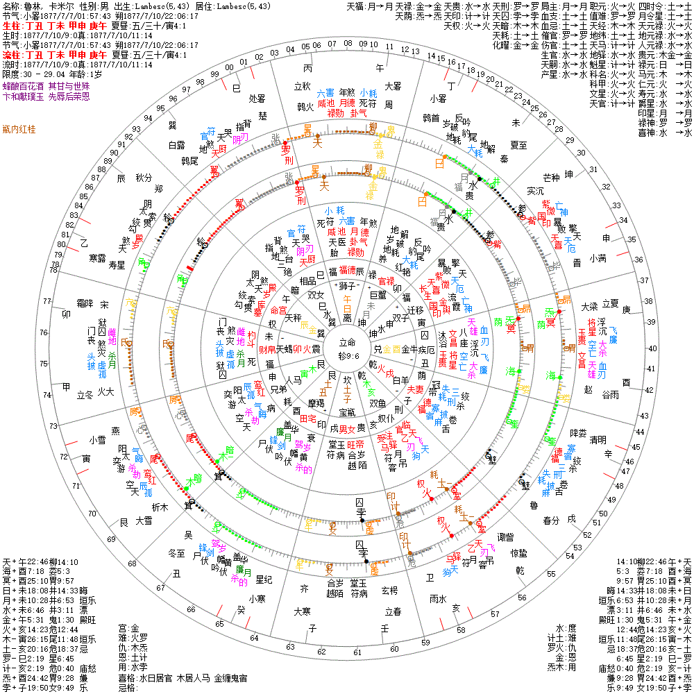 出生阳历:1877/7/10/9:0