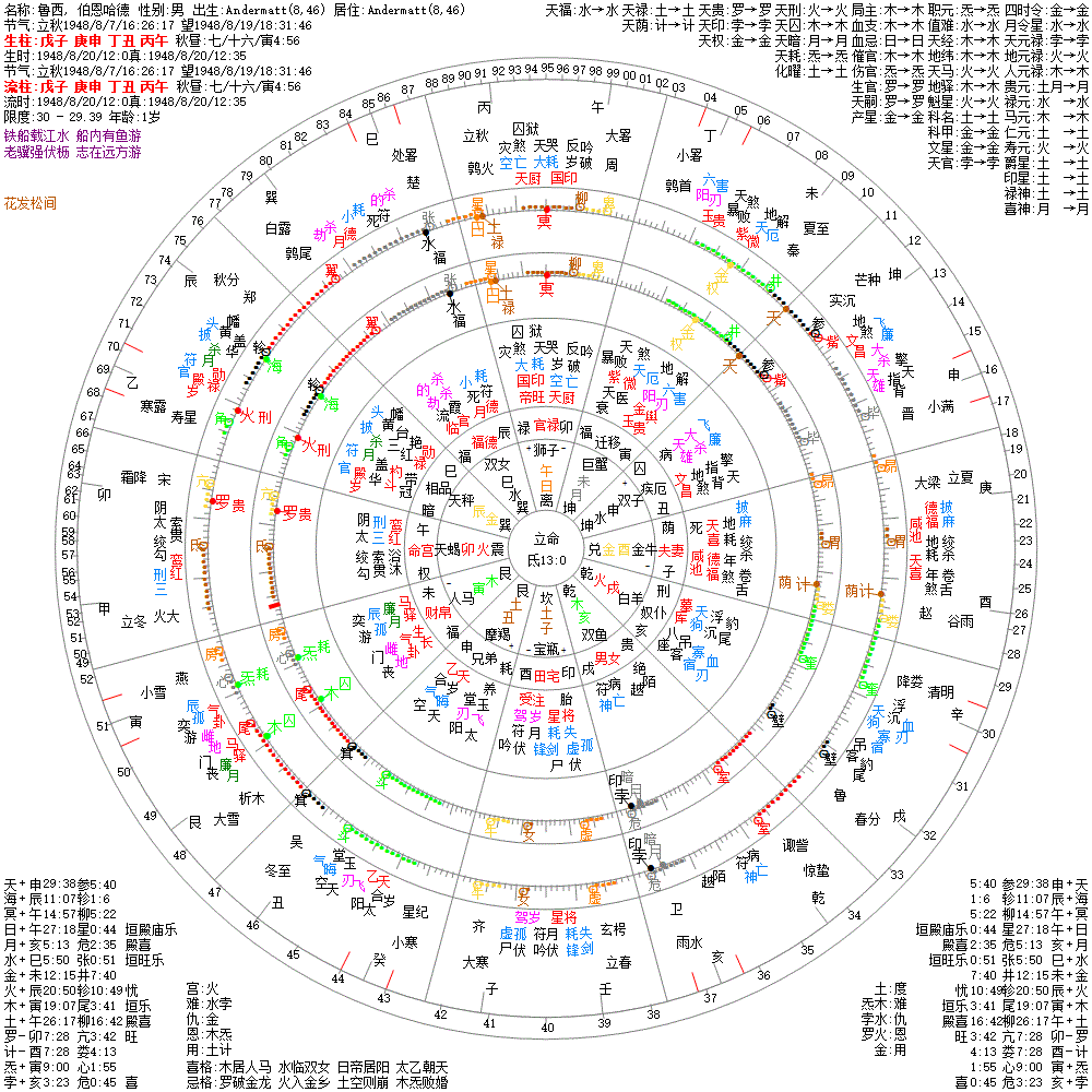 子女长生:男女宫主星飞入长生之地,子女数多也,可在先天数上翻倍。