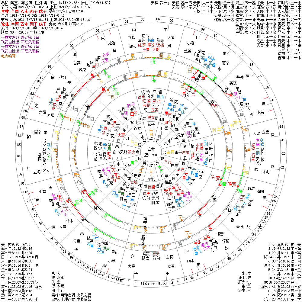 大运:甲午13 癸巳23 壬辰33 辛卯43 庚寅53 己丑63 戊子73 丁亥83 丙戌93 乙酉103