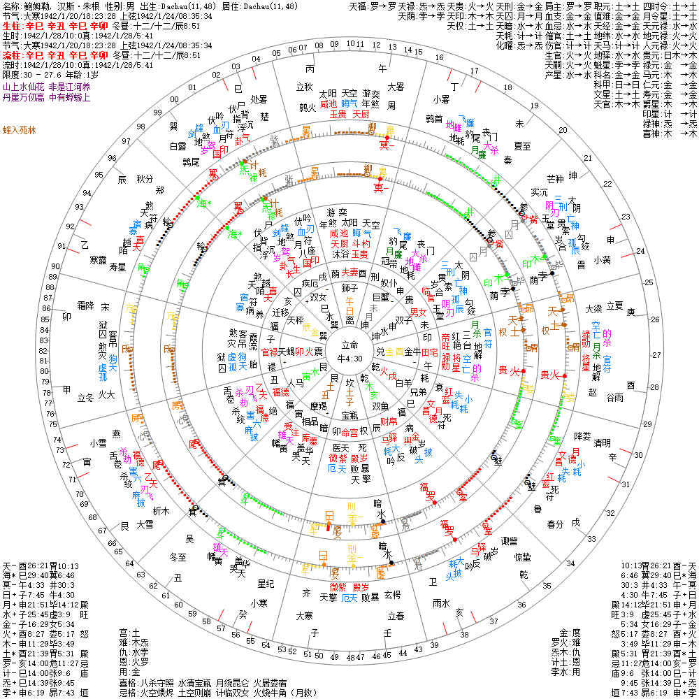 大运:庚子9 己亥19 戊戌29 丁酉39 丙申49 乙未59 甲午69 癸巳79 壬辰89 辛卯99