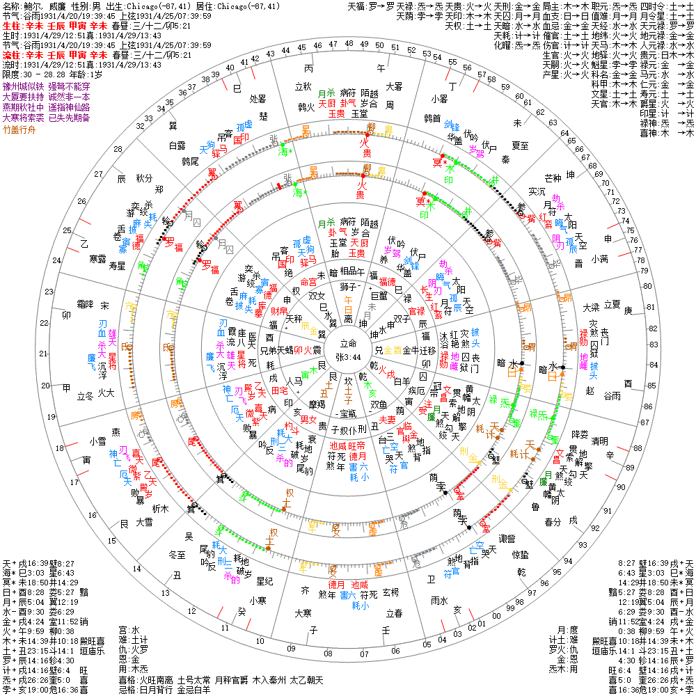 大运:辛卯10 庚寅20 己丑30 戊子40 丁亥50 丙戌60 乙酉70 甲申80 癸未90 壬午100