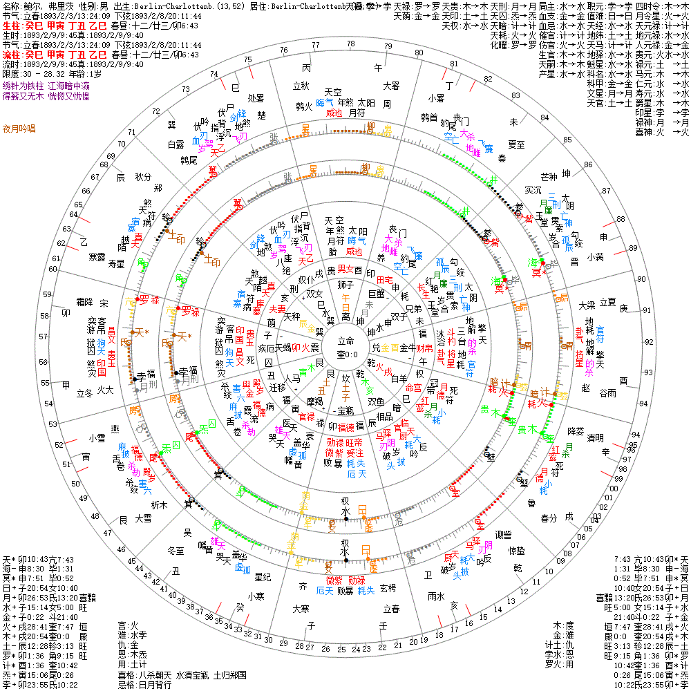 大运:癸丑13 壬子23 辛亥33 庚戌43 己酉53 戊申63 丁未73 丙午83 乙巳93 甲辰103