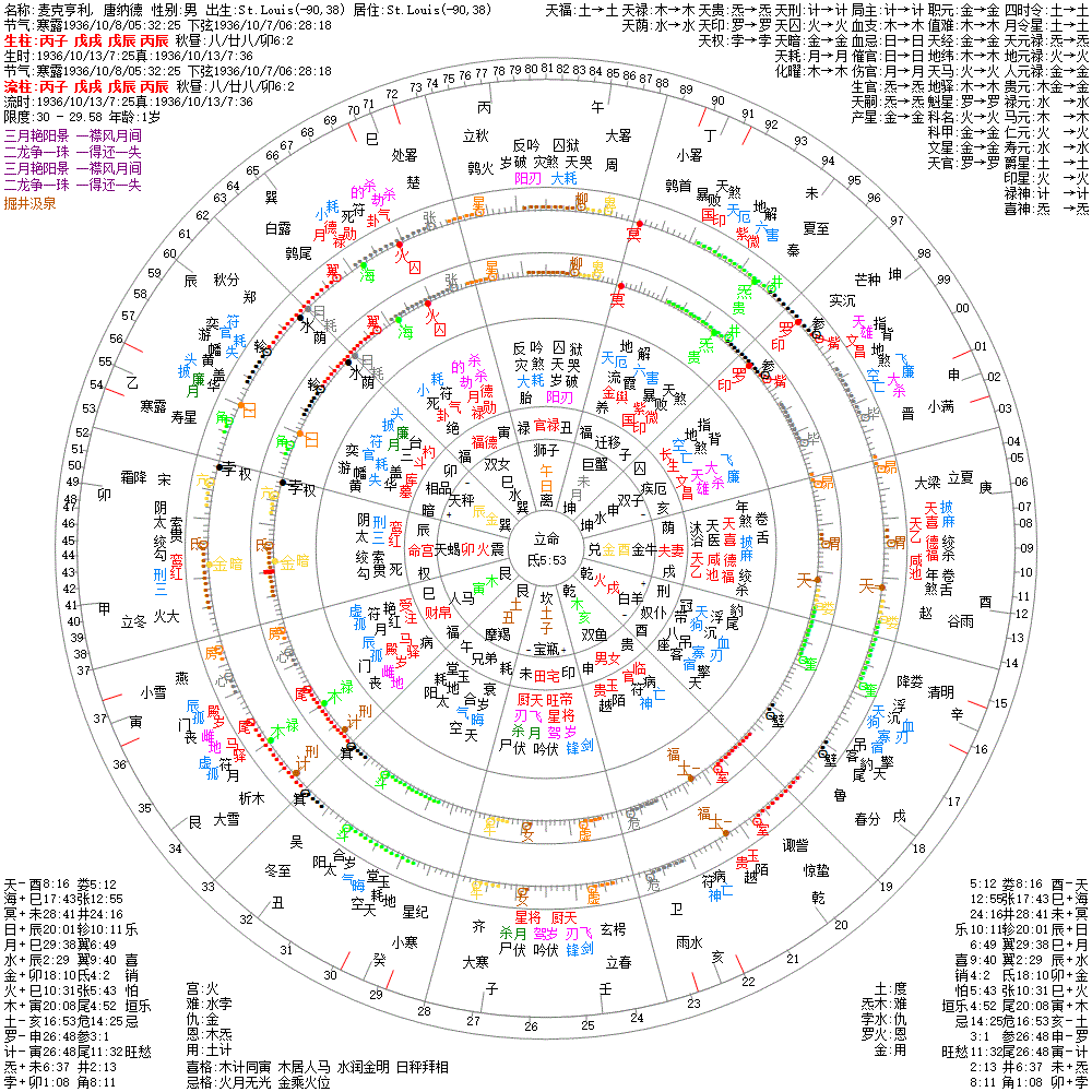 大运:己亥10 庚子20 辛丑30 壬寅40 癸卯50 甲辰60 乙巳70 丙午80 丁未90 戊申100