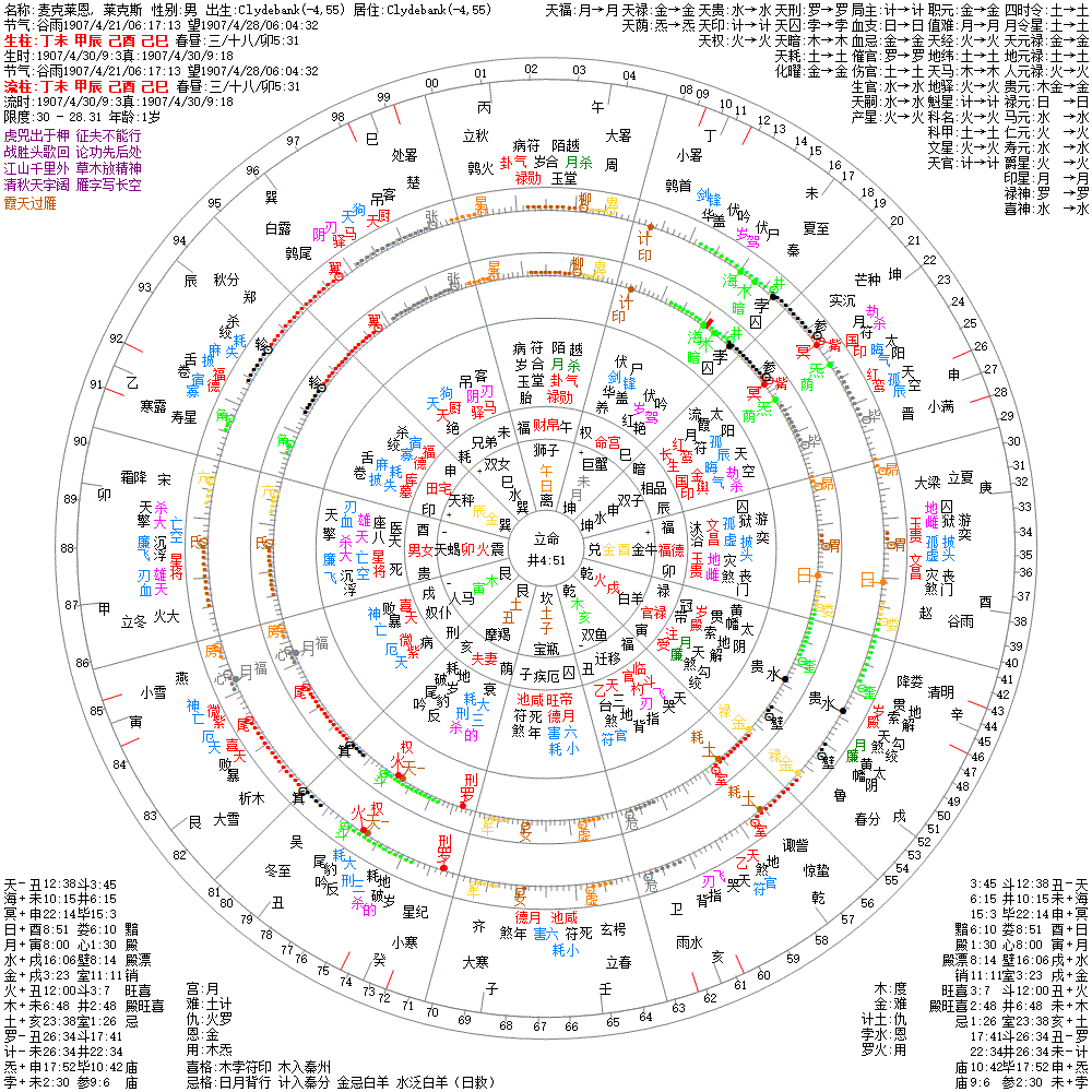 大运:癸卯10 壬寅20 辛丑30 庚子40 己亥50 戊戌60 丁酉70 丙申80 乙未90 甲午100