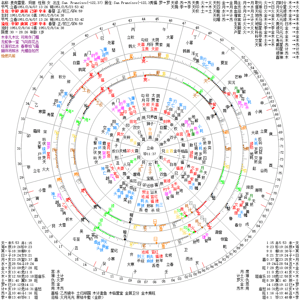 大运:辛卯10 壬辰20 癸巳30 甲午40 乙未50 丙申60 丁酉70 戊戌80 己亥90 庚子100