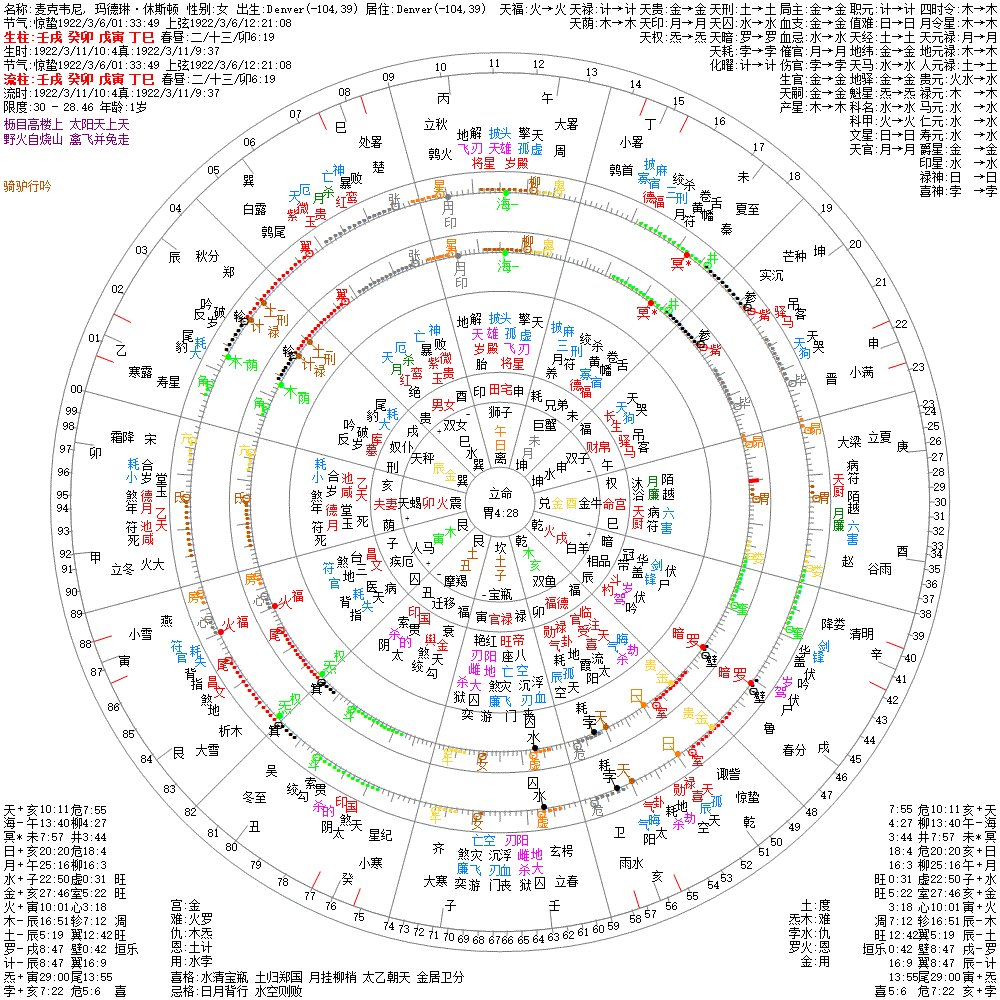 大运:壬寅13 辛丑23 庚子33 己亥43 戊戌53 丁酉63 丙申73 乙未83 甲午93 癸巳103
