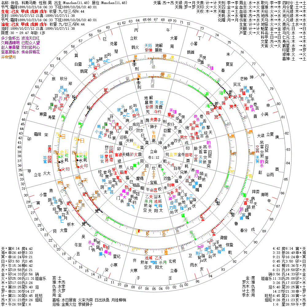 出生阳历:1899/10/27/12:21