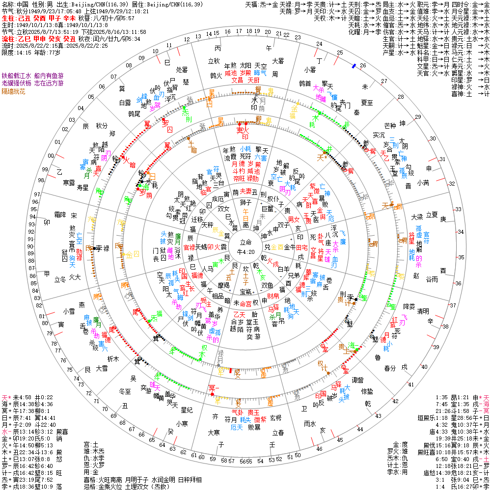 我们试着以果老星宗星盘进行辅助解读,十二宫与四季的对应关系为:寅、卯、辰(春季),巳、午、未(夏季),申、酉、戌(秋季),以及亥、子、丑(冬季)每个季节包含三个地支,分别对应不同的五行属性和方位。