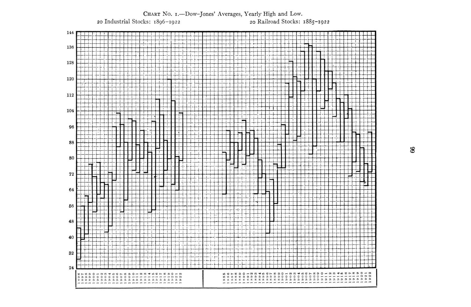 - 道琼斯平均指数:年度高低点 ——20 只工业股票(1896-1922 年)、20 只铁路股票(1885-1922 年)—— 页码 66