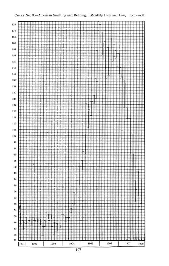 - 美国熔炼与精炼公司股票月度高低点(1901-1908 年)—— 页码 107