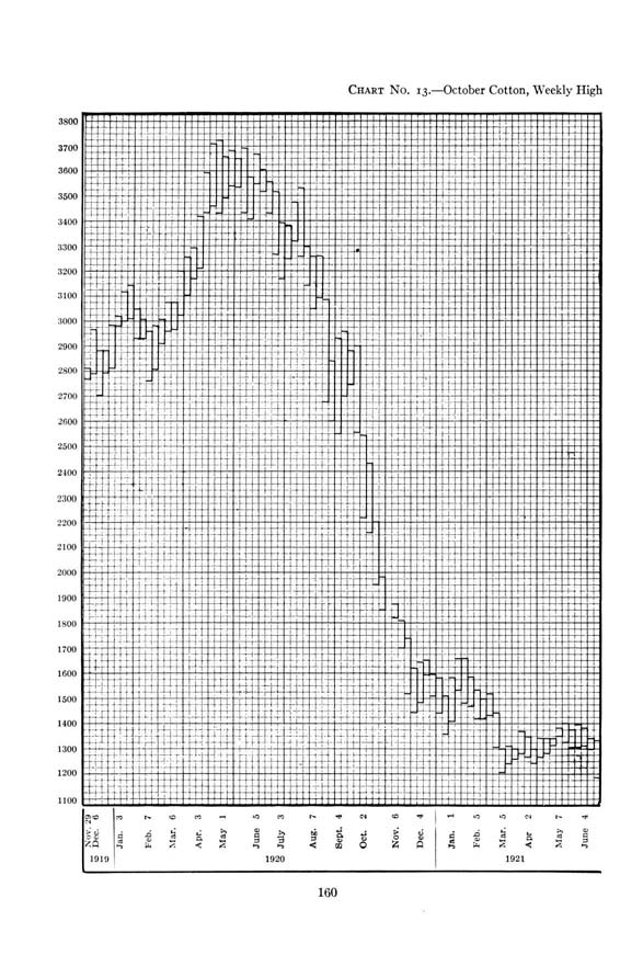 无论在新奥尔良棉花交易所、纽约棉花交易所还是利物浦棉花市场交易,一旦趋势明确,所有市场的走势都会一致。利物浦可能有一天与纽约走势相反,但很少会连续两天相反,纽约和新奥尔良的情况也是如此,它们的走势总是高度一致。