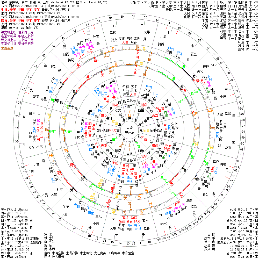 大运:癸丑7 壬子17 辛亥27 庚戌37 己酉47 戊申57 丁未67 丙午77 乙巳87 甲辰97