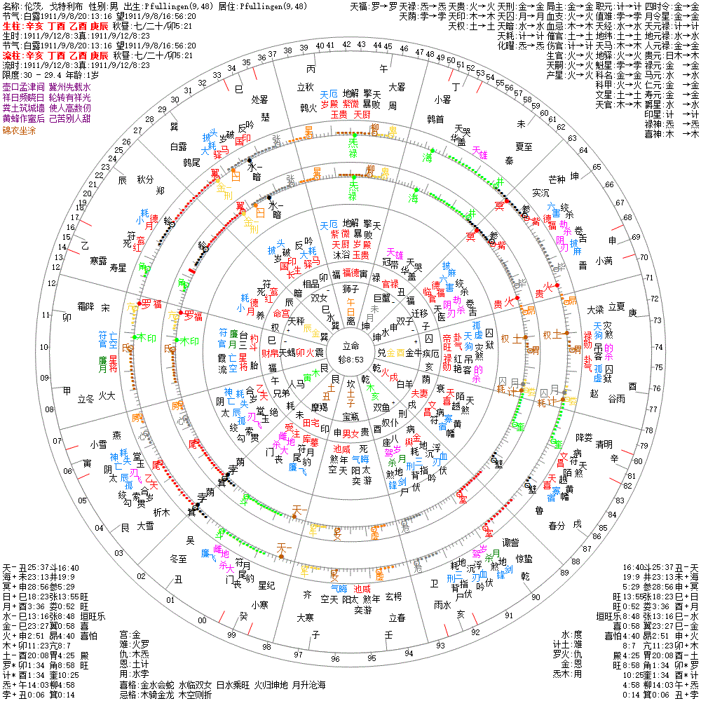 小运:己卯1 戊寅2 丁丑3 丙子4 乙亥5 甲戌6 癸酉7 壬申8 辛未9 庚午10 己巳11 戊辰12