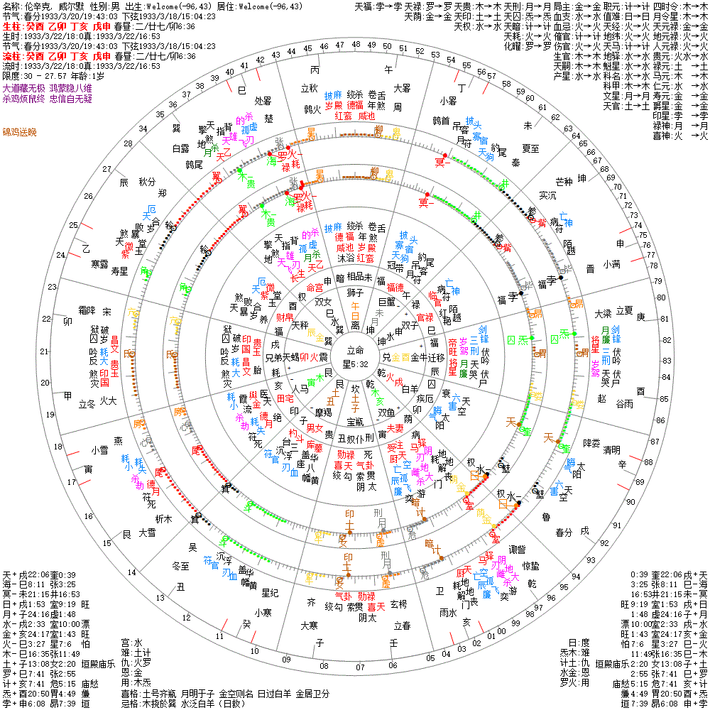 大运:甲寅7 癸丑17 壬子27 辛亥37 庚戌47 己酉57 戊申67 丁未77 丙午87 乙巳97