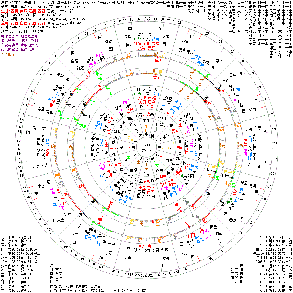 大运:辛巳10 壬午20 癸未30 甲申40 乙酉50 丙戌60 丁亥70 戊子80 己丑90 庚寅100