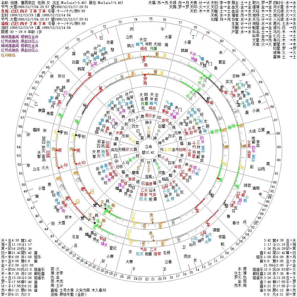 大运:丁丑9 戊寅19 己卯29 庚辰39 辛巳49 壬午59 癸未69 甲申79 乙酉89 丙戌99