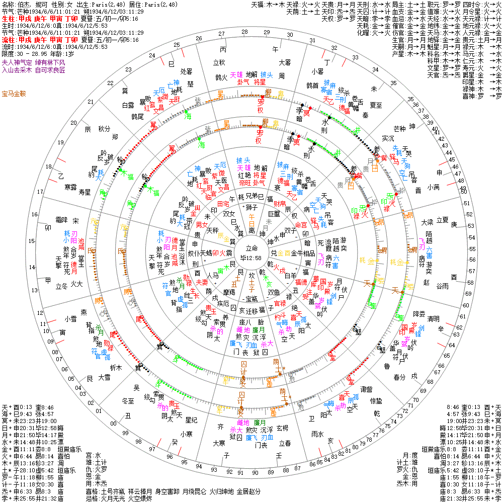 大运:己巳14 戊辰24 丁卯34 丙寅44 乙丑54 甲子64 癸亥74 壬戌84 辛酉94 庚申104