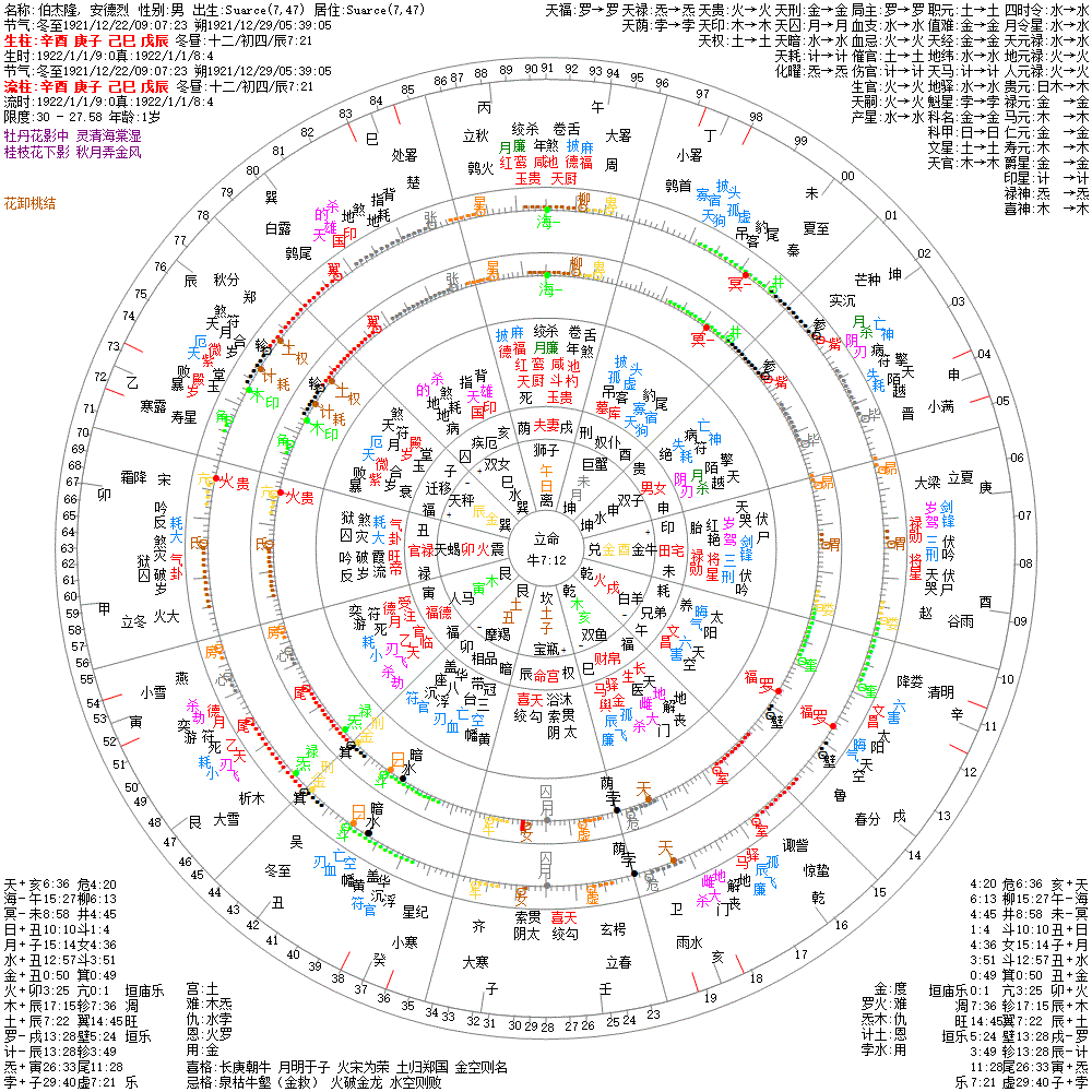 大运:己亥10 戊戌20 丁酉30 丙申40 乙未50 甲午60 癸巳70 壬辰80 辛卯90 庚寅100